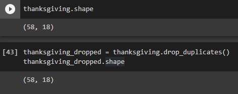 We used the drop_duplicates() function on both datasets once they were converted into dataframes, and after comparing the shape of both the original and the dropped duplicate dataframes, the number of records was the same, so we concluded that there were no duplicates.