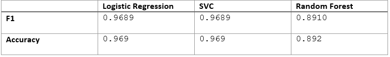 After the train/test data was loaded the data was cleaned, and then formatted for Bag of Words representation. The Bag of words vectorizer used had a max feature limit of 25000 with n-grams set to 1-3. TF-IDF vectorization was also tried but results were not affected in metric testing and performed worse on the real data. After vectorization, the corpus created was split into train and test subsets with an 80-20 split. The logistic regression was then run and tuned to find the optimal model.