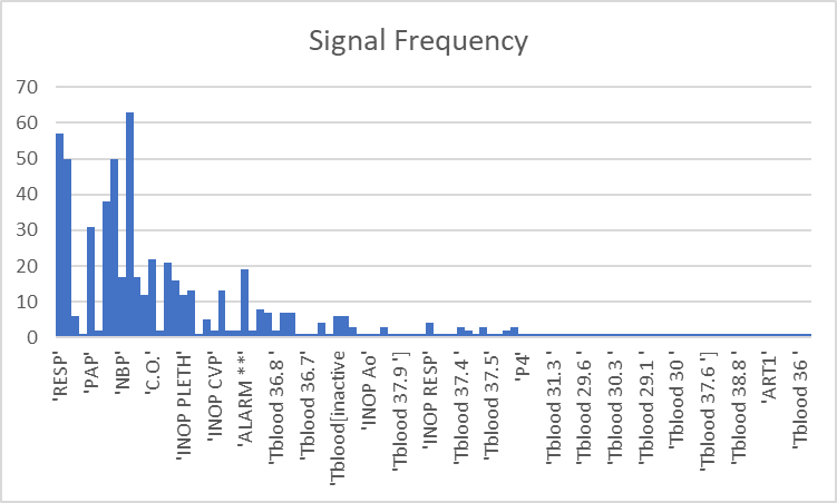 In the below chart, the y-axis represents the number of patients that the signal was present, and the x-axis represents each signal.