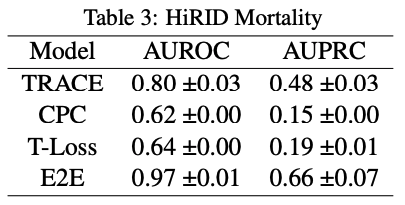 The original paper introduces a new unsupervised representation learning method called TRACE which builds on the TNC (Temporal Neighborhood Coding) framework to produce better predictions on ICU data.